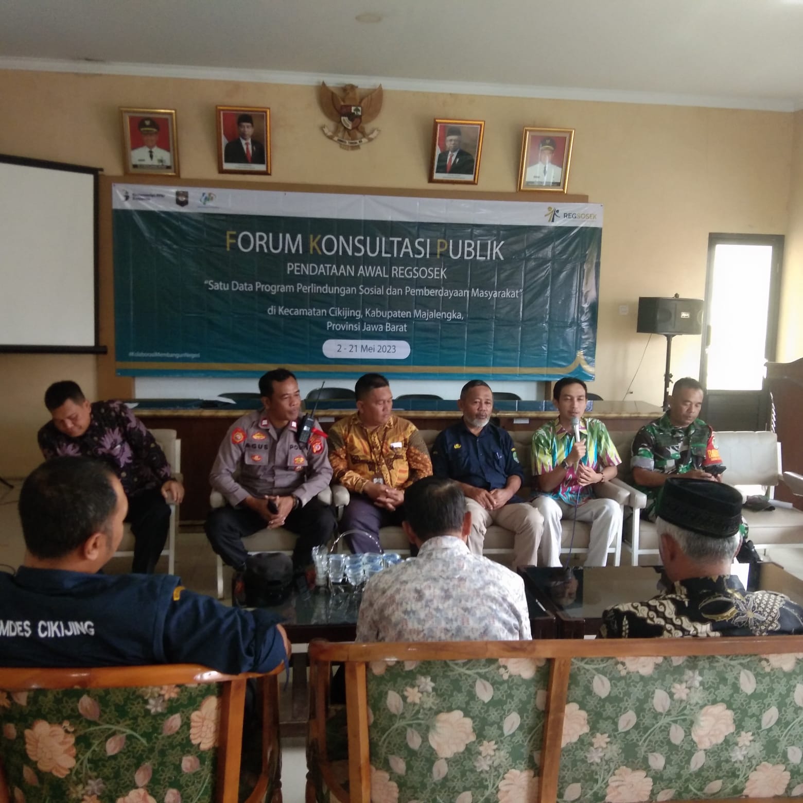Majalengka - Personil Polsek Cikijing Polres Majalengka Polda Jabar, Ps. Panit Samapta lll Aiptu Agus Sri Wandono, S.H menghadiri rapat koordinasi forum konsultasi publik (FKP) hasil pendataan awal registrasi sosial ekonomi (Regsosek) oleh Badan Pusat Statistik (BPS) Kabupaten Majalengka yang bertempat di Aula Kantor Desa Cikijing Kecamatan Cikijing Kabupaten Majalengka. Jum'at (05/05/2023).