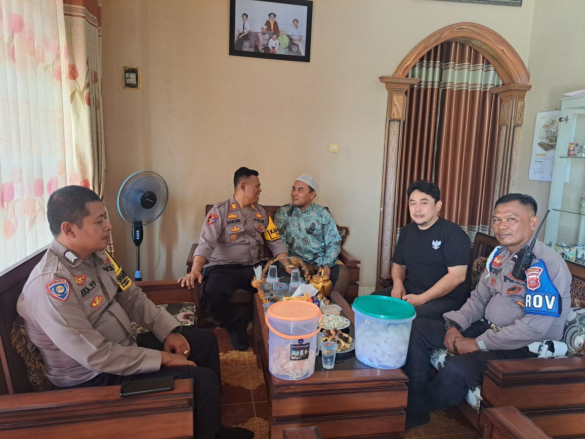 Kapolsek Cigasong didampingi Anggota Polsek Cigasong di kediaman Bapak H.Wawan berbincang dengan Tokoh Agama Desa Kutamanggu Kecamatan Cigasong Kabupaten Majalengka.
